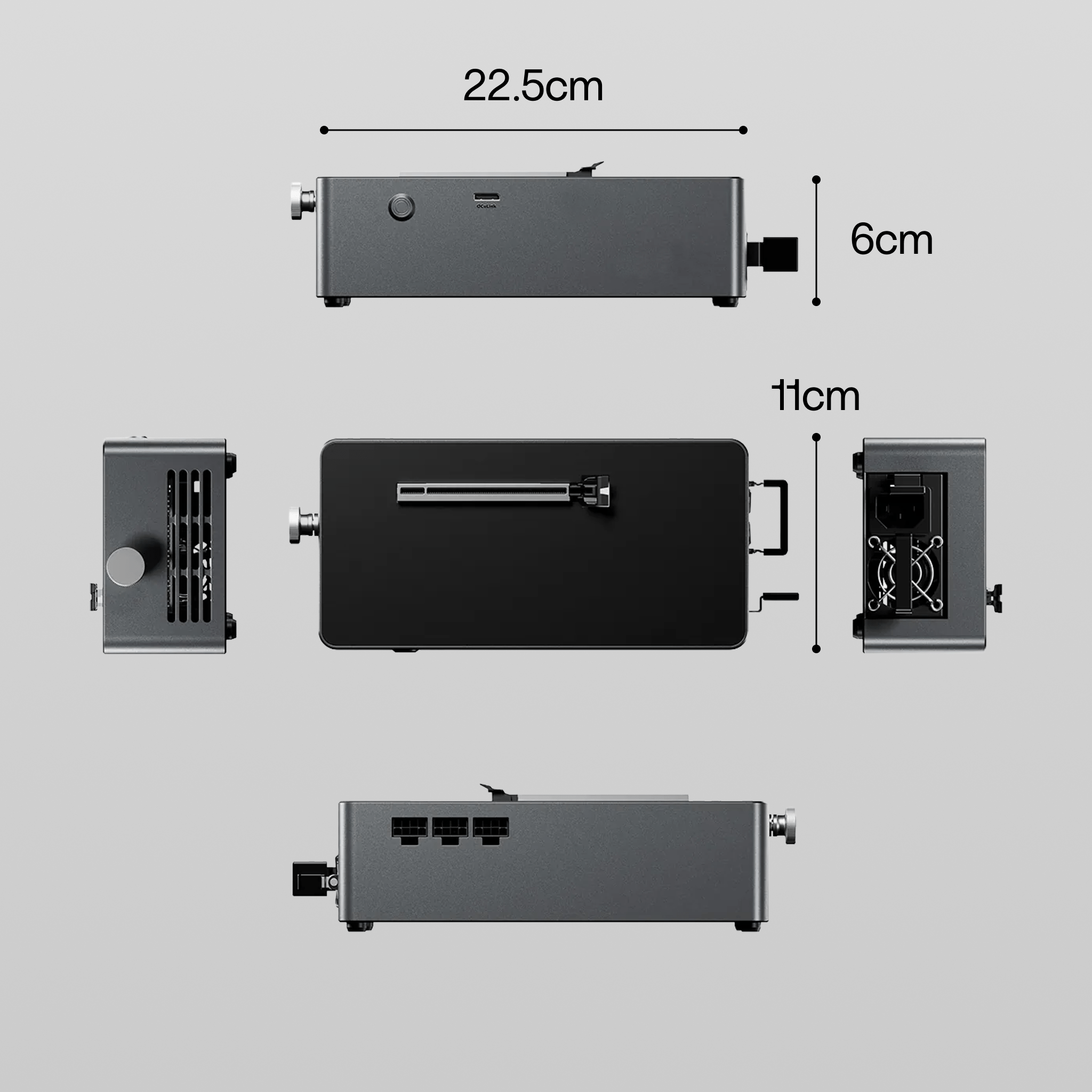 Built-in 800W Power Supply Unit: Provides power to the graphics card without the need for an external power supply, ensuring stable power delivery, supporting GPUs with a maximum power consumption of 650W, and ensures stable power delivery.