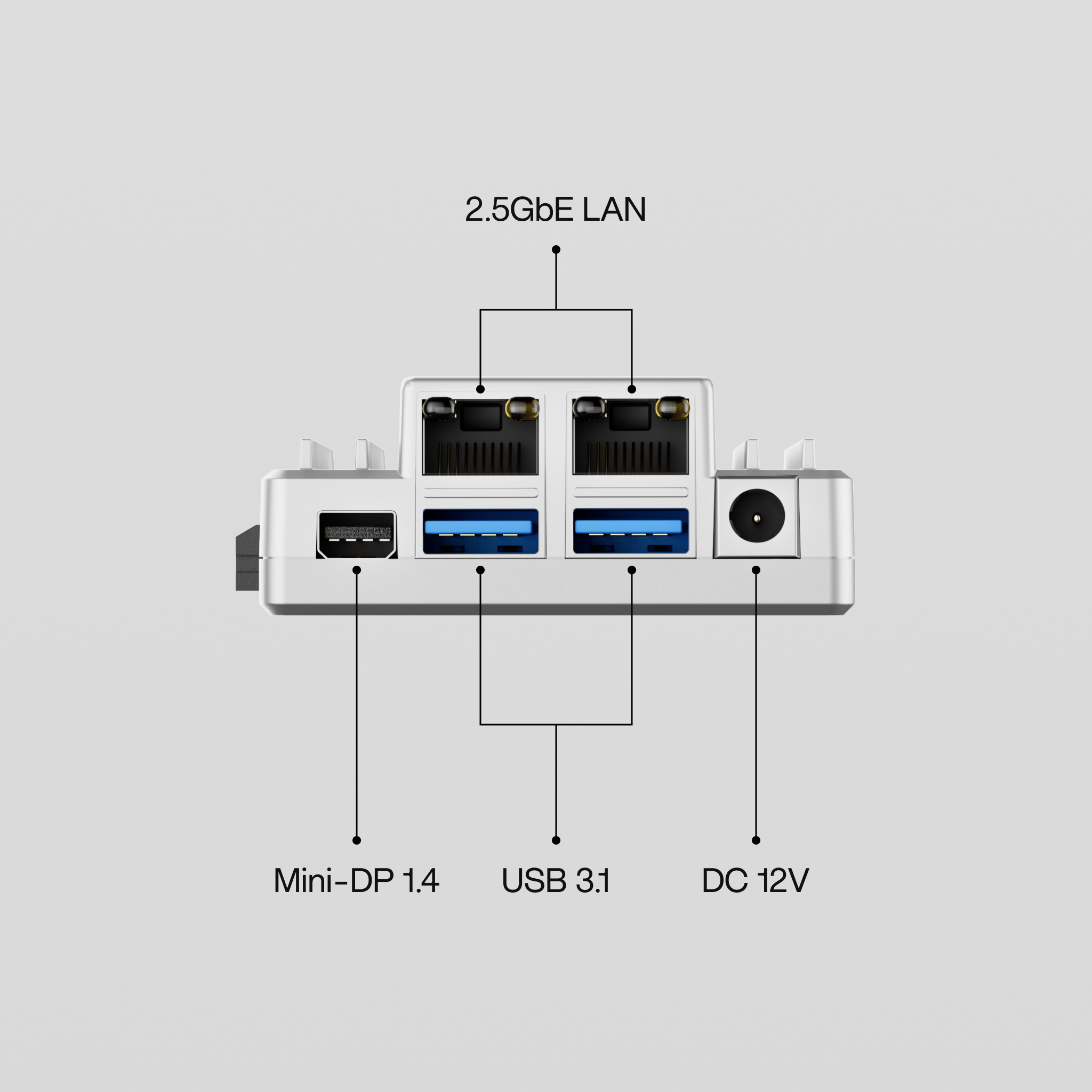 Plug in 2.5" HDDs/SSDs, install a 10G NIC, GPU, or NVMe adapter. It's ready for your personal storage or expansion needs. - Dual 2.5G Ethernet built-in.